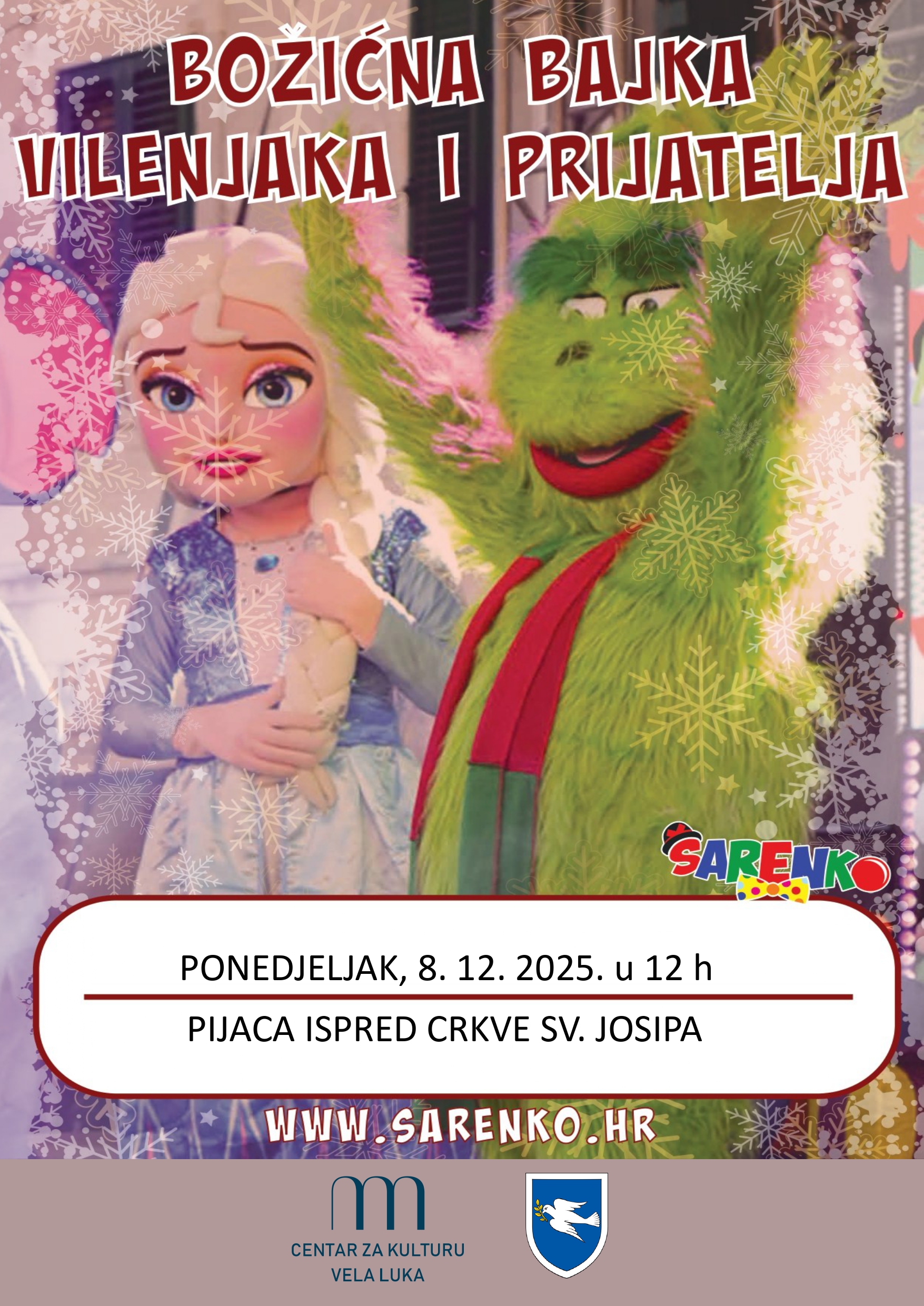 Centar za kulturu Vela Luka i ove godine priprema poseban adventski program za naše najmlađe. Nakon prošlogodišnjeg uspješnog nastupa, ponovno nam stiže klaun Šarenko sa svojim čarobnim animatorima – još bogatiji i veseliji!