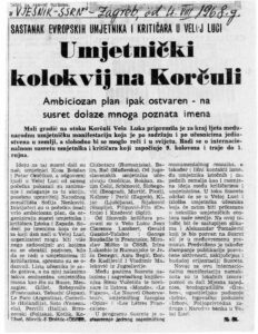 Na međunarodnoj izložbi u Veloj Luci bili su zastupljeni sljedeći umjetnici i likovni kritičari: Endre Balint (Mađarska), Claude Bellegarde (Francuska), Kosa Bokšan (ex Jugoslavija), Vaclav Boštik (ex Čehoslovačka), Tadeusz Brozowski (Poljska), Jacques Busse (Francuska), Ciubotaru Florin (Rumunjska), Corneille (Holandija), Stojan Ćelić (ex Jugoslavija), E. R. Gillet (Francuska, nije bio osobno prisutan), Tadeusz Kantor (Poljska), Joko Knežević (ex Jugoslavija), Jan Kotik (ex Čehoslovačka), Julio Le Parc (Argentina, nije bio osobno prisutan), Edo Murtić (ex Jugoslavija, nije bio osobno prisutan), Jean Messagier (Francuska), Branko Omčikus (ex Jugoslavija), Achille Perilli (Italija), Šime Perić (ex Jugoslavija), Ivan Picelj (ex Jugoslavija, nije bio osobno prisutan), Andres Rac (Mađarska), Paul Rebeyrolle (Francuska), Brigitte Simlinger (Austrija), Otokar Slavik (ex Čehoslovačka), Jesus Raphael Soto (Venezuela, nije bio osobno prisutan), Yasse Tabuchi (Japan), Aleksandar Tomašević (ex Jugoslavija, umro u vrijeme priprema susreta), Kemal Širbegović (ex Jugoslavija), Jean – Clarence Lambert (Francuska), Miroslav Mićko (ex Čehoslovačka), Georges Boudaille (Francuska), Luc Ferrari (Francuska).