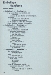 Tadeuzs Kantor, Emballage Manifeste, katalog, 1. Međunarodni susret likovnih umjetnika 1968.
